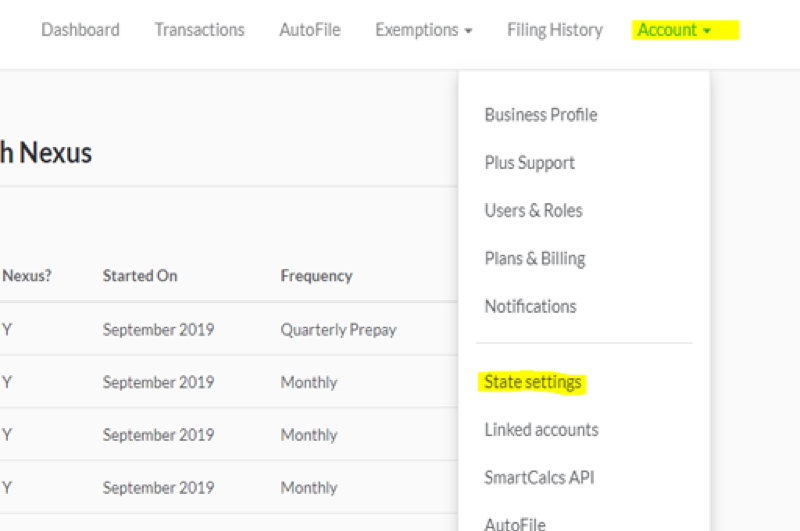 Log into your TaxJar account at www.taxjar.com and make any necessary changes there by clicking on Account, then State Settings.