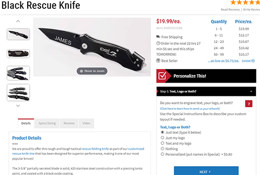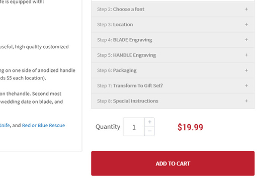 Finally, we like to push Miva’s boundaries to deliver customer friendly functionality that no one else has tried to address the unique nature of Lazer Designs’ custom offerings. In so doing, we customized the product display to focus on user interactivity and ease of use by organizing the engraving options, and we built dynamic price calculations for volume prices and addons. And we built a dimension-based products display (for magnets and stencils) with dynamic pricing that adjusts for size and volume-pricing.